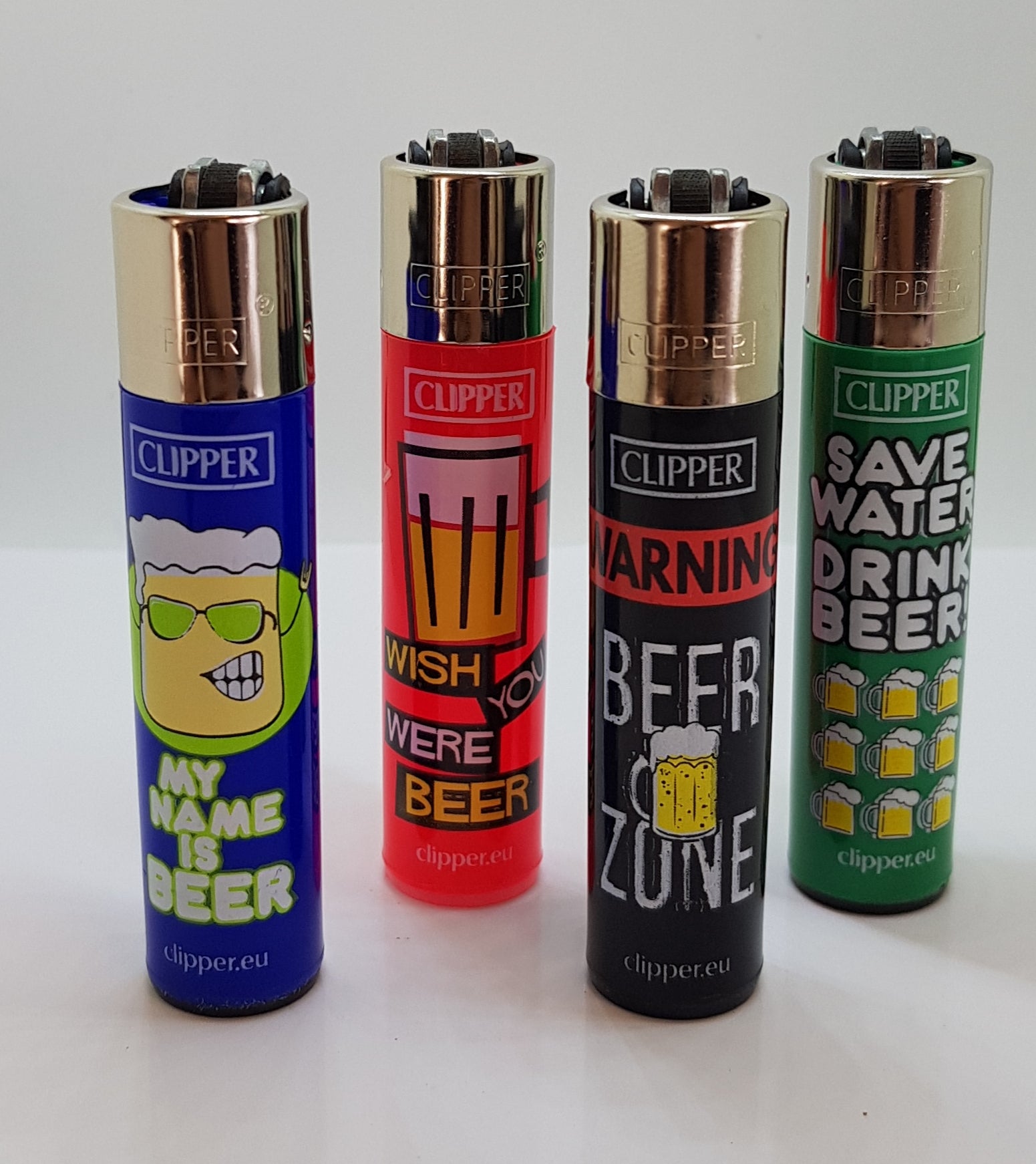 Brand New 4 Clipper Lighters Happy Beer Collection Unused Refillable Lighters
