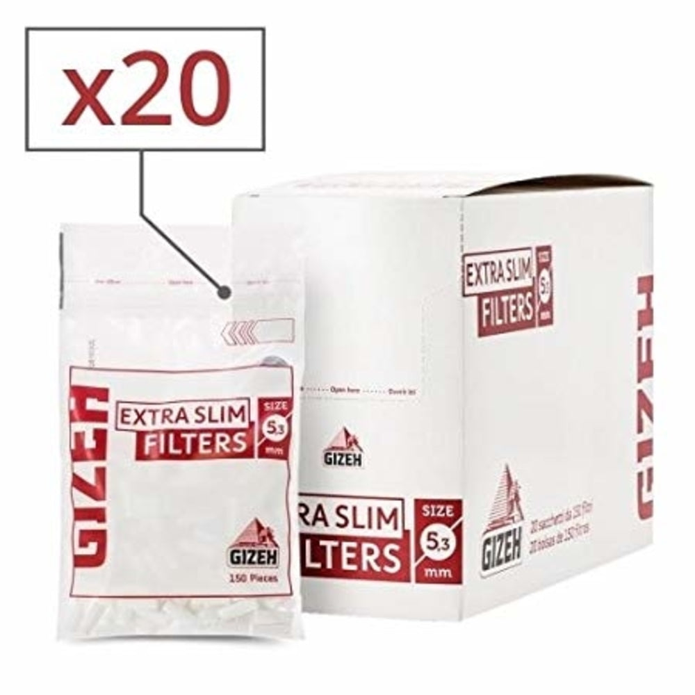 Gizeh Extra Slim Filter Tips (5.3mm) – Lot of 20 Bags, 150 Tips per Bag
